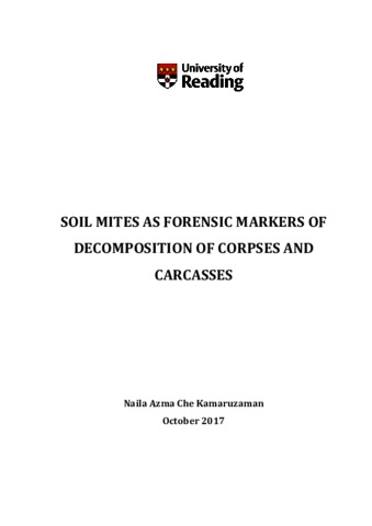 Che Kamaruzaman, N. A. (2019) Soil mites as forensic markers of decomposition of corpses and carcasses. PhD thesis, University of Reading. doi: 10.48683/1926.00088939
