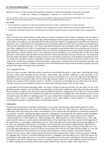 Spatial scale effect of surface routing and its parameter upscaling for urban flood simulation using a grid‐based model.