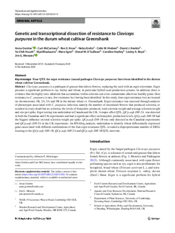 Genetic and transcriptional dissection of resistance to Claviceps purpurea in the durum wheat cultivar Greenshank.