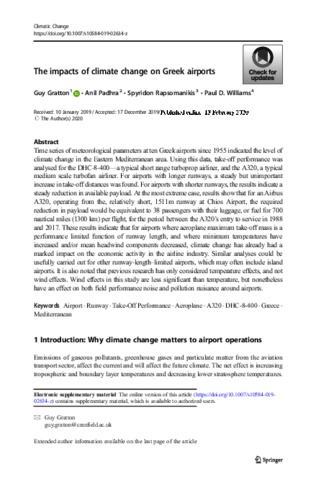 Gratton, G., Padhra, A., Rapsomanikis, S. and Williams, P. D. orcid id iconORCID: https://orcid.org/0000-0002-9713-9820 (2020) The impacts of climate change on Greek airports. Climate Change, 160 (2). pp. 219-231. ISSN 0165-0009 doi: 10.1007/s10584-019-02634-z