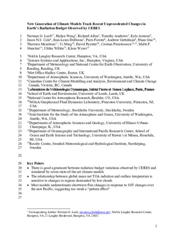 New generation of climate models track recent unprecedented changes in Earth's radiation budget observed by CERES.