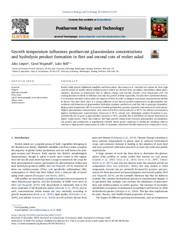 Growth temperature influences postharvest glucosinolate concentrations and hydrolysis product formation in first and second cuts of rocket salad.