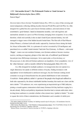'Just another Kraut'?: The Wehrmacht Traitor as ‘Good German’ in Hollywood’s Decision before Dawn (1951)