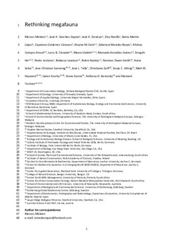 Moleon, M., Sánchez-Zapata, J. A., Donázar, J. A., Revilla, E., Martín-López, B., Gutiérrez-Cánovas, C., Getz, W. M., Morales-Reyes, Z., Campos-Arceiz, A., Crowder, L. B., Galetti, M., Gonzalez-Suarez, M.