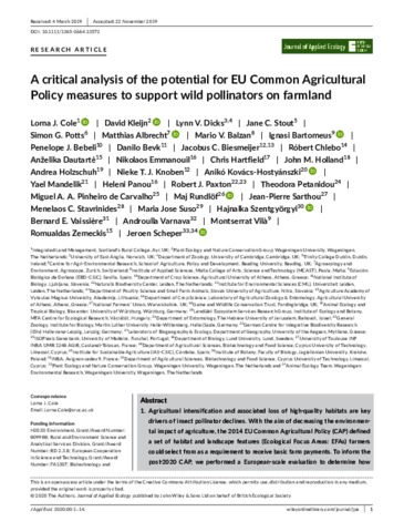 A critical analysis of the potential for EU Common Agricultural Policy measures to support wild pollinators on farmland.
