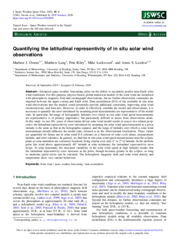 Quantifying the latitudinal representivity of in situ solar wind observations.