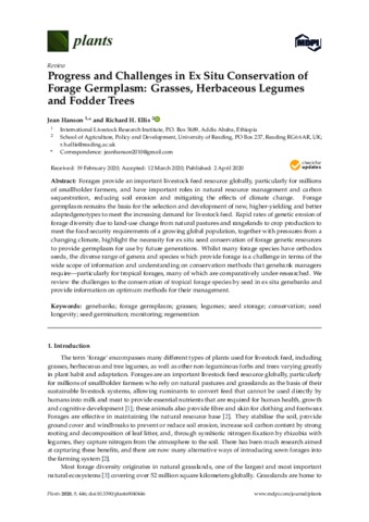 12. Ellis, R.H.; Nasehzadeh, M.; Hanson, J.; Ndiwa, N.; Woldemariam, Y. Medium-term seed storage of diverse genera of forages grasses, evidence-based genebank monitoring intervals, and regeneration standards. Genet Resour Crop Evol 2019, 66, 723-734; DOI 10.1007/s10722-019-00748-y.-volV)