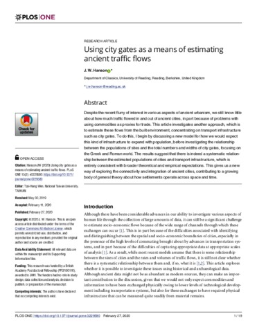 Hanson, J. W. (2020) Using city gates as a means of estimating ancient traffic flows. PLoS ONE, 15 (2). e0229580. ISSN 1932-6203 doi: 10.1371/journal.pone.0229580