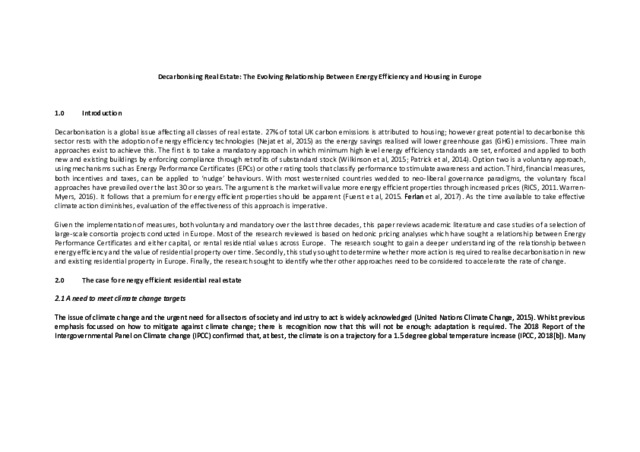 Wilkinson, S. J. and Sayce, S. (2020) Decarbonising real estate: the evolving relationship between energy efficiency and housing in Europe. Journal of European Real Estate Research, 13 (3). pp. 387-408. ISSN 1753-9269 doi: 10.1108/JERER-11-2019-0045