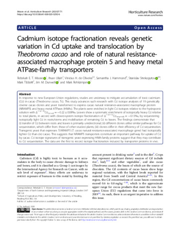 37. Barraza, F. et al. Cadmium isotope fractionation in the soil – cacao systems of Ecuador: a pilot field study. RSC Adv. 9, 34011–34022 (2019).