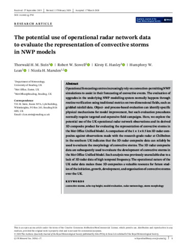 The potential use of operational radar network data to evaluate the representation of convective storms in NWP models.