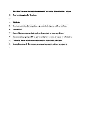 The role of the urban landscape on species with contrasting dispersal ability: insights from greening plans for Barcelona.