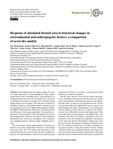 Teckentrup, L., Harrison, S. P. ORCID: https://orcid.org/0000-0001-5687-1903, Hantson, S., Heil, A., Melton, J. R., Forrest, M., Li, F., Yue, C., Arneth, A., Hickler, T., Sitch, S. and Lasslop, G.