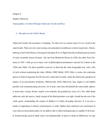 Topographies of liberal thought: Rand and Arendt and race.