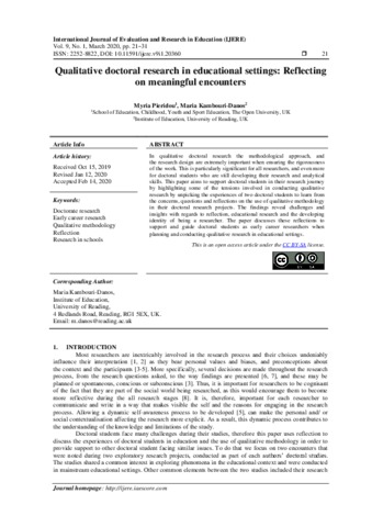 Qualitative doctoral research in educational settings: reflecting on meaningful encounters.