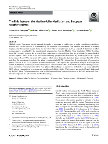 The links between the Madden-Julian oscillation and European weather regimes.
