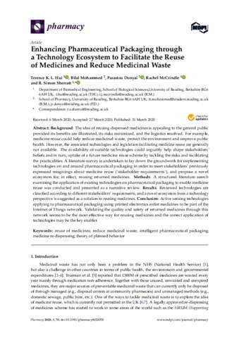 Enhancing pharmaceutical packaging through a technology ecosystem to facilitate the reuse of medicines and reduce medicinal waste.
