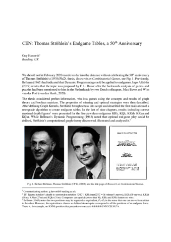 Haworth, G. orcid id iconORCID: https://orcid.org/0000-0001-9896-1448 (2020) Thomas Ströhlein's Endgame Tables: a 50th Anniversary. ICGA Journal, 42 (2-3). pp. 165-170. ISSN 1389-6911 doi: 10.3233/ICG-200151