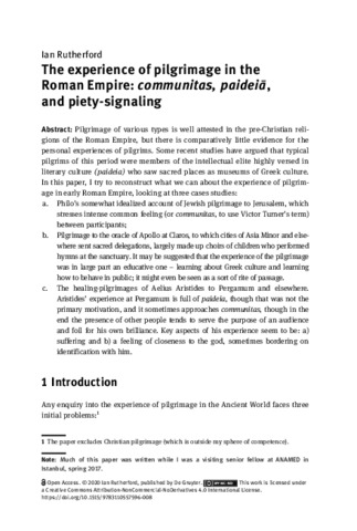 The experience of pilgrimage in the Roman Empire: communitas, paideiā, and piety-signaling.