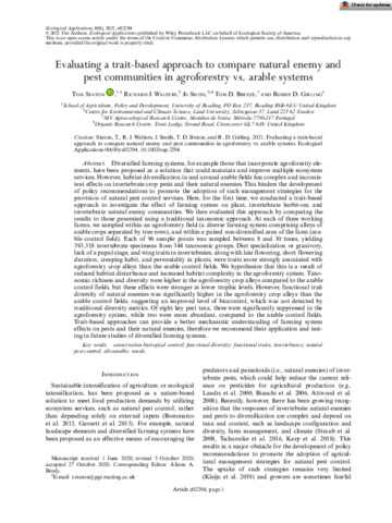 Evaluating a trait-based approach to compare natural enemy and pest communities in agroforestry versus arable systems.