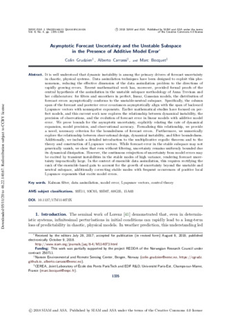 Asymptotic forecast uncertainty and the unstable subspace in the presence of additive model error.