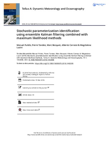 Pulido, M., Tandeo, P., Bocquet, M., Carrassi, A. orcid id iconORCID: https://orcid.org/0000-0003-0722-5600 and Lucini, M. (2018) Stochastic parameterization identification using ensemble Kalman filtering combined with maximum likelihood methods. Tellus A: Dynamic Meteorology and Oceanography, 70 (1). pp. 1-17. ISSN 1600-0870 doi: 10.1080/16000870.2018.1442099