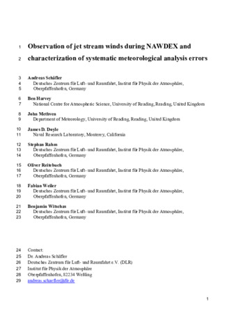 Observation of jet stream winds during NAWDEX and characterization of systematic meteorological analysis errors.