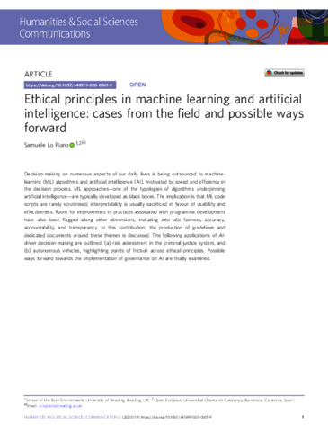 Ethical principles in machine learning and artificial intelligence: cases from the field and possible ways forward.