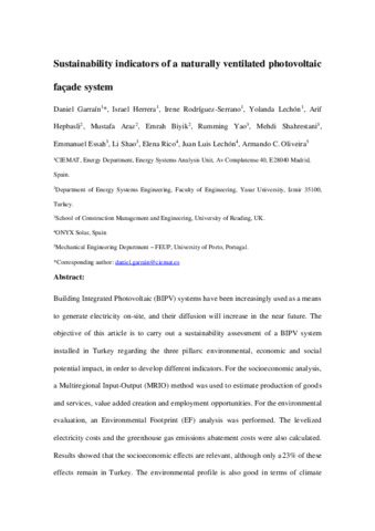 Sustainability indicators of a naturally ventilated photovoltaic façade system.