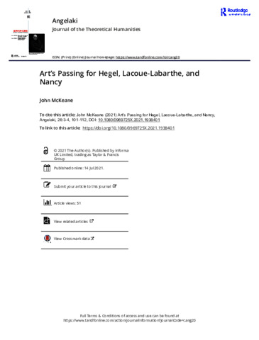 Art's passing for Hegel, Lacoue-Labarthe, Nancy.
