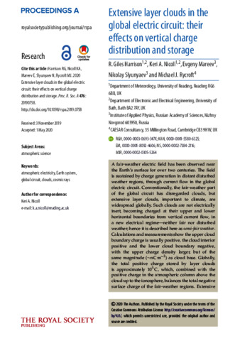 Extensive layer clouds in the global electric circuit: their effects on vertical charge distribution and storage.