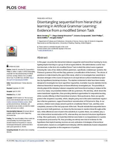 Disentangling sequential from hierarchical learning in artificial grammar learning: evidence from a modified Simon task.