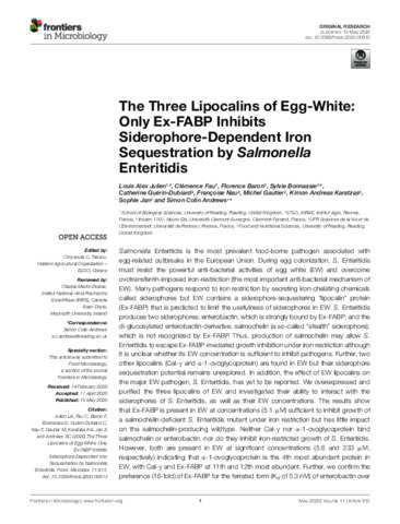 The three lipocalins of egg-white: only Ex-FABP inhibits siderophore-dependent iron sequestration by Salmonella Enteritidis.