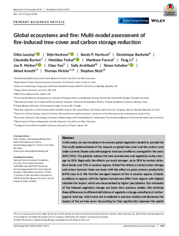 Global ecosystems and fire: multi-model assessment of fire-induced tree cover and carbon storage reduction.