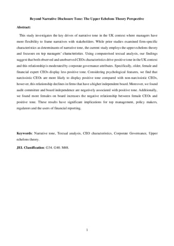 [thumbnail of Beyond Narrative Disclosure Tone- The Upper Echelons Theory Perspective.pdf]