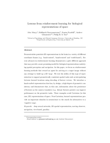 Lessons from reinforcement learning for biological representations of space.