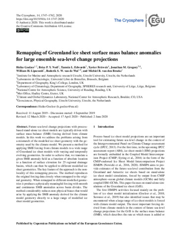 Goelzer, H., Noël, B. P. Y., Edwards, T. L., Fettweis, X., Gregory, J. M. ORCID: https://orcid.org/0000-0003-1296-8644, Lipscomb, W. H., van de Wal, R. S. W. and van den Broeke, M. R.