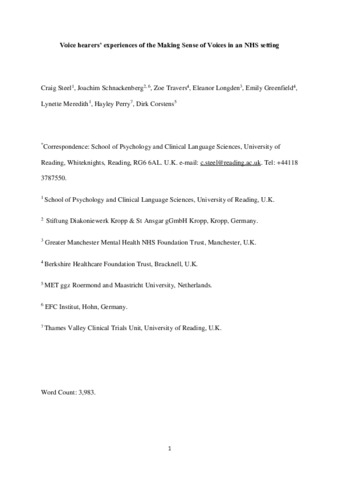 Steel, C., Schnackenberg, J., Travers, Z., Longden, E., Greenfield, E., Meredith, L., Perry, H. and Corstens, D. (2020) Voice hearers’ experiences of the Making Sense of Voices in an NHS setting. Psychosis, 12 (2). pp. 106-114. ISSN 1752-2439 doi: 10.1080/17522439.2019.1707859
