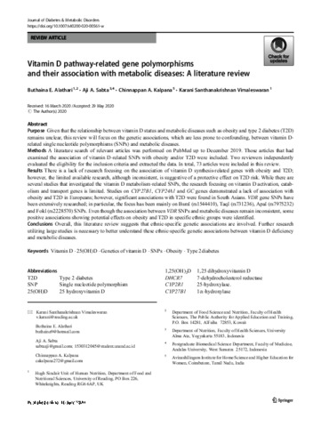 Vitamin D pathway-related gene polymorphisms and their association with metabolic diseases: a literature review.
