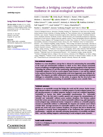 Resilience is a cross-disciplinary concept relevant for understanding the sustainability of the social and environmental conditions in which we live. Most research normatively focuses on building or strengthening resilience, despite growing recognition of the importance to break resilience of, and thus transform, unsustainable social-ecological systems. Undesirable resilience (cf. ‘lock-ins’, ‘social-ecological traps’), however, is not only less explored in the academic literature but its understanding is also more fragmented across different disciplines. This disparity can inhibit collaboration among researchers exploring interdependent challenges in sustainability sciences. In this article, we propose that the term ‘lock-in’ may contribute to a common understanding of undesirable resilience across scientific fields.