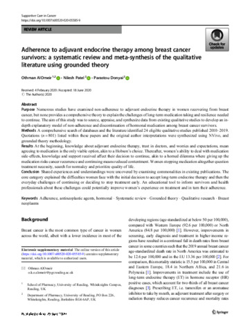Adherence to adjuvant endocrine therapy among breast cancer survivors: a systematic review and meta-synthesis of the qualitative literature using grounded theory.