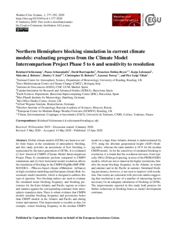 Schiemann, R. ORCID: https://orcid.org/0000-0003-3095-9856, Athanasiadis, P., Barriopedro, D., Doblas-Reyes, F., Lohmann, K., Roberts, M. J., Sein, D. V., Roberts, C. D., Terray, L. and Vidale, P. L.
