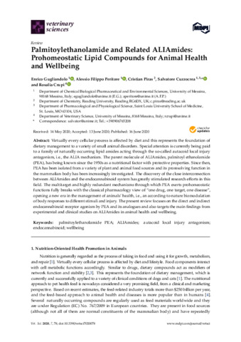 Palmitoylethanolamide and related ALIAmides: prohomeostatic pipid compounds for animal health and wellbeing.