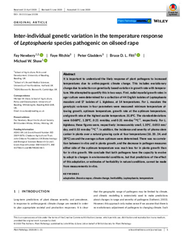Inter-individual genetic variation in the temperature response of Leptosphaeria species pathogenic on oilseed rape.