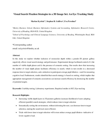 Kyritsis, M., Gulliver, S. R., & Feredoes, E. (2016). Environmental factors and features that influence visual search in a 3D WIMP interface. International Journal of Human-Computer Studies, 92, 30-43.