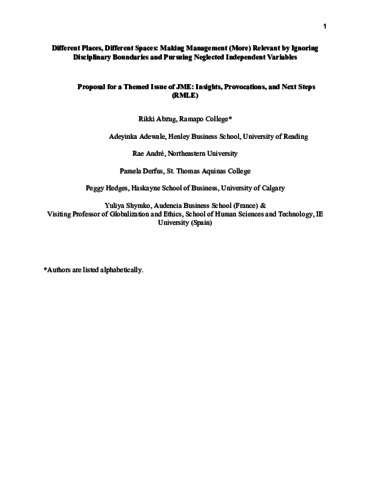 Making management (more) relevant: breaking down disciplinary walls and pursuing neglected independent variables.