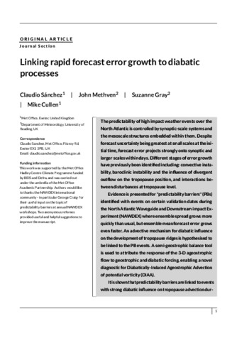 Linking rapid forecast error growth to diabatic processes.