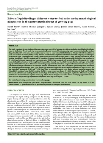 Hurst, D., Juniper, D., Clark, L., Litten-Brown, J., Corson, A. and Lean, I. (2020) Effect of liquid feeding at different water-to-feed ratios on the morphological adaptations in the gastrointestinal tract of growing pigs. Journal of Food Nutrition and Agriculture, 3. pp. 1-8. ISSN 2616-6550 doi: 10.21839/jfna.2020.v3.314