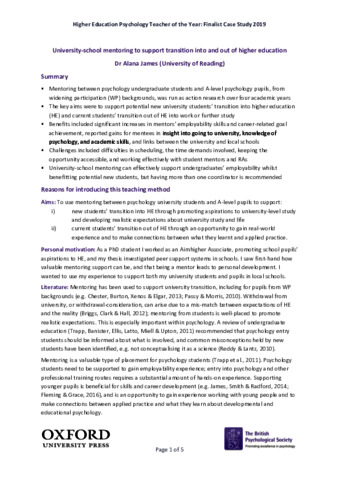 James, A. I. (2019) University-school mentoring to support transition into and out of higher education. Psychology Teaching Review, 25 (2). ISSN 0965-948X