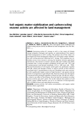 Soil organic matter stabilization and carbon-cycling enzyme activity are affected by land management.